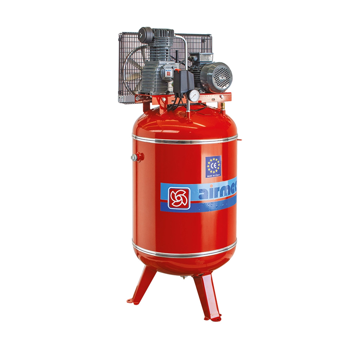 Testata bicilindrica in ghisa con valvole in acciaio inox ad elevato rendimento. Funzionamento a basso regime di giri. La costruzione su serbatoio verticale ed il conseguente minimo ingombro ne permettono l’utilizzo anche in spazi ristretti. Il motore elettrico monofase è sovradimensionato con forte coppia di avviamento completo di protezione termica a riarmo manuale. Il motore elettrico trifase è protetto da un interruttore magnetotermico regolabile installato direttamente sul pressostato.