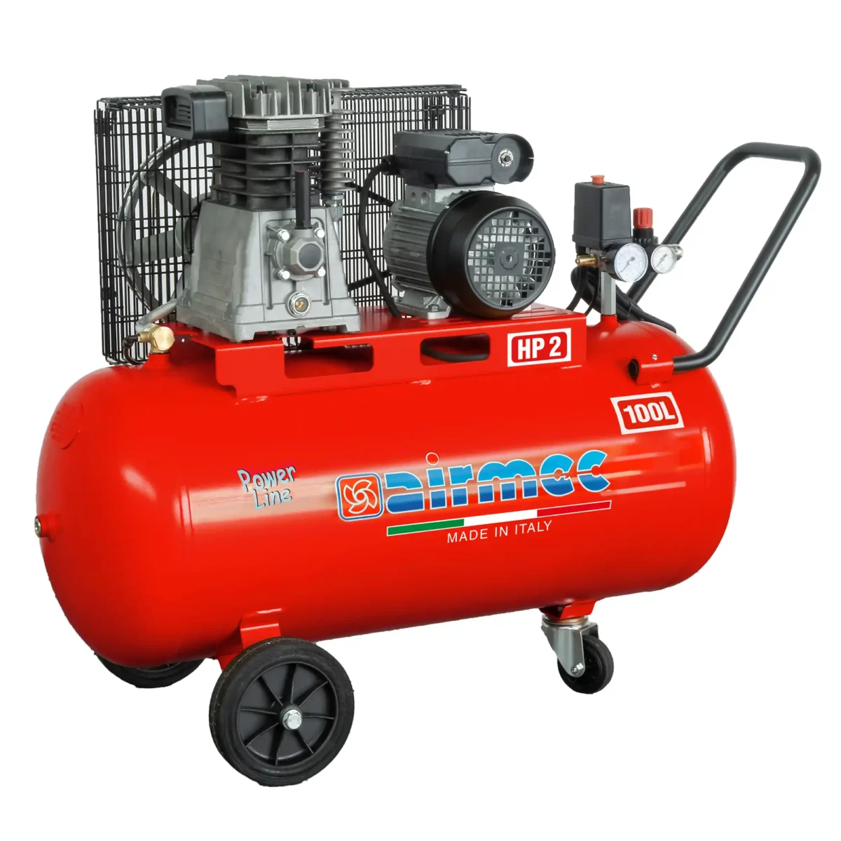 Testata bicilindrica in ghisa con valvole in acciaio inox. Il motore elettrico monofase è sovradimensionato con forte coppia di avviamento completo di protezione termica a riarmo manuale.