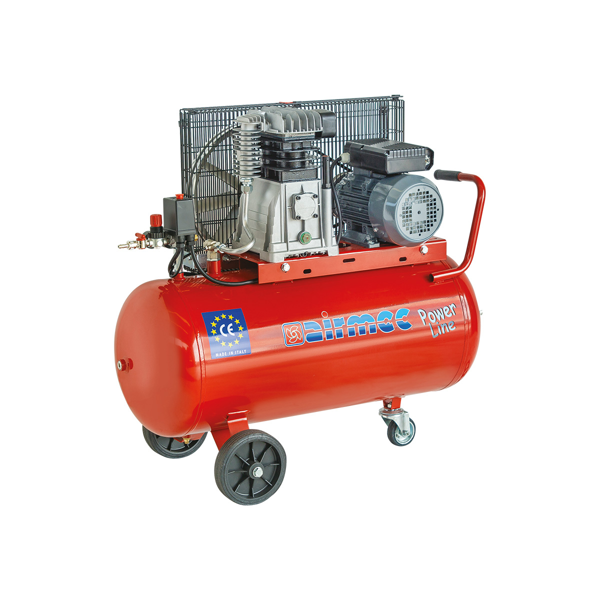 Testata bicilindrica in ghisa con valvole in acciaio inox. Il motore elettrico monofase è sovradimensionato con forte coppia di avviamento completo di protezione termica a riarmo manuale. Il motore elettrico trifase è protetto da un interruttore magnetotermico.